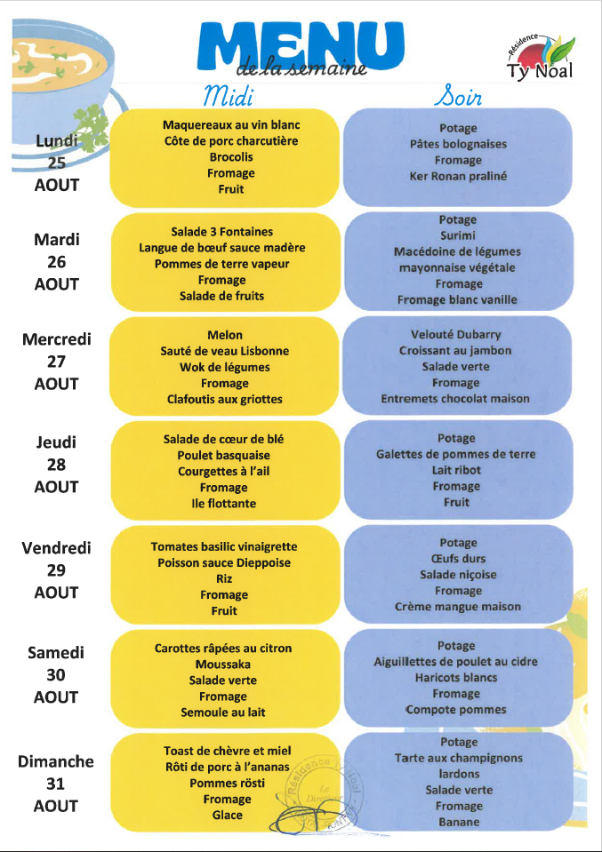 Menus août 2025 Auteur/autrice de la publication :residencetynoal Publication publiée :1 août 2025 Post category:Menus Vous devriez également aimer Menus septembre 2025 29 août 2025 Menus d’octobre 2025 3 octobre 2025 Menus de Novembre 2025 31 octobre 2025